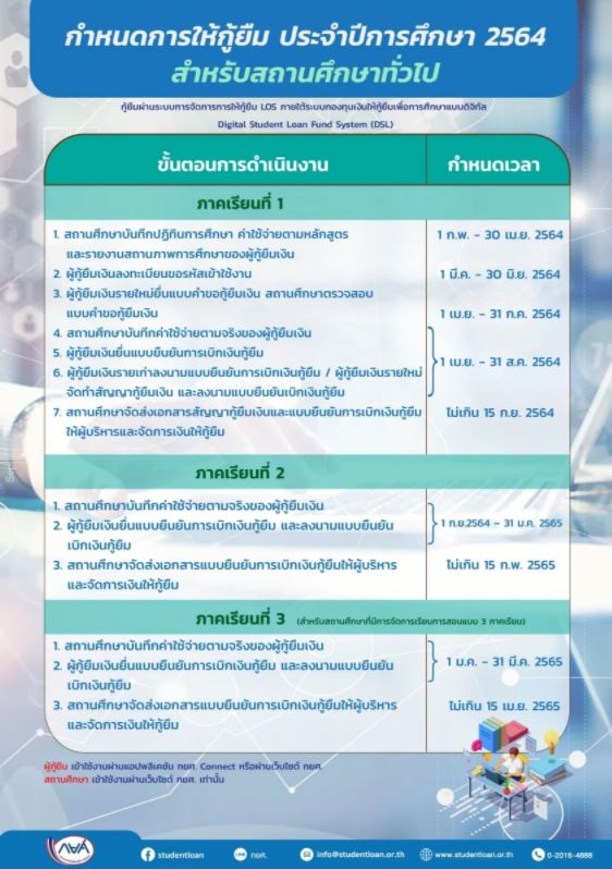 กำหนดการให้กู้ยืมเงินกองทุนเงินให้กู้ยืมเพื่อการศึกษา ประจำปีการศึกษา 2564