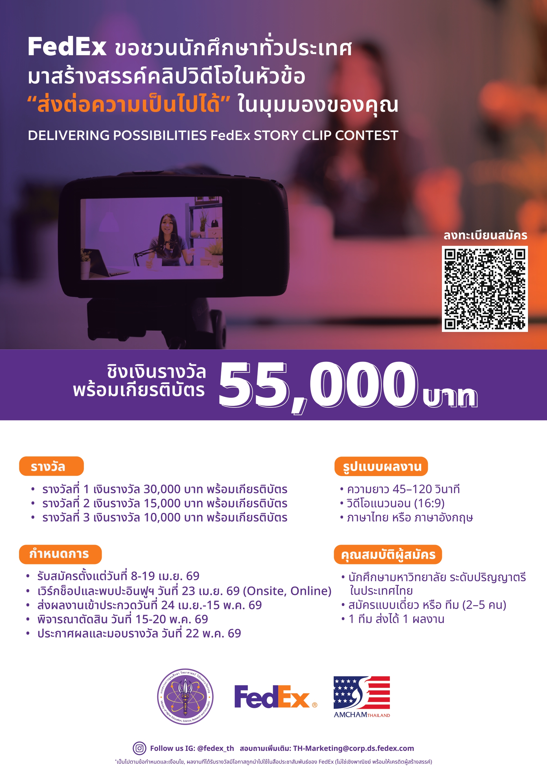 บริษัท เฟดเดอรัล เอ็กซ์เพรส (ประเทศไทย) จำกัด หรือ เฟดเอ็กซ์ ขอเชิญชวนนักศึกษาระดับปริญญาตรี เข้าร่วมการแข่งขัน FedEx Story Clip Video Contest ภายใต้หัวข้อ